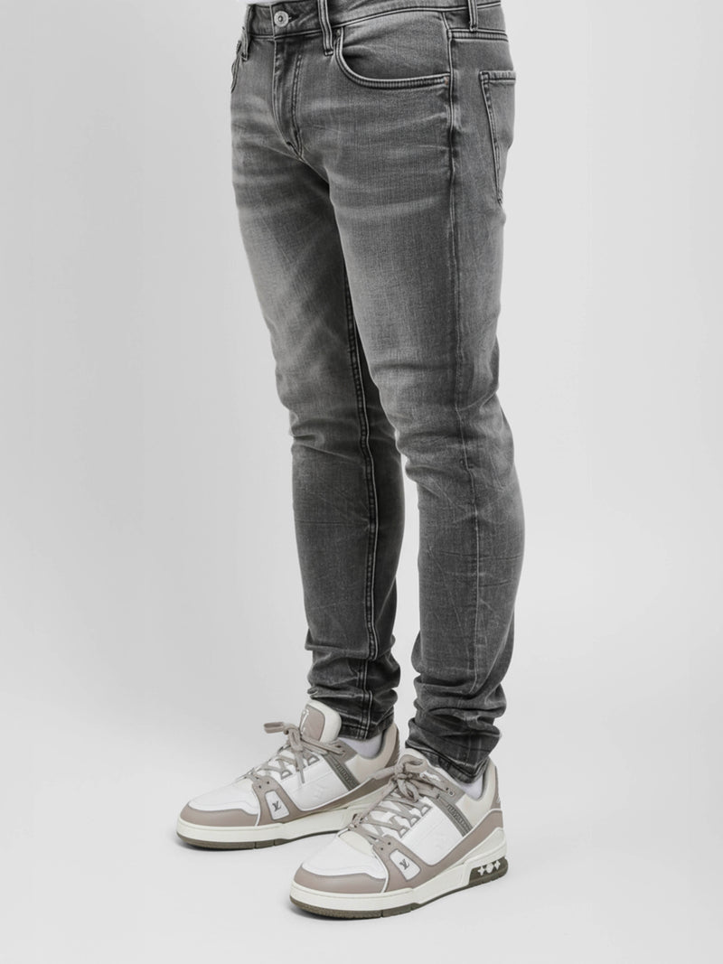 Jeans de mezclilla gris claro, color liso estilo 'Milazzo Grey', inspirados en Italia y de primera calidad.