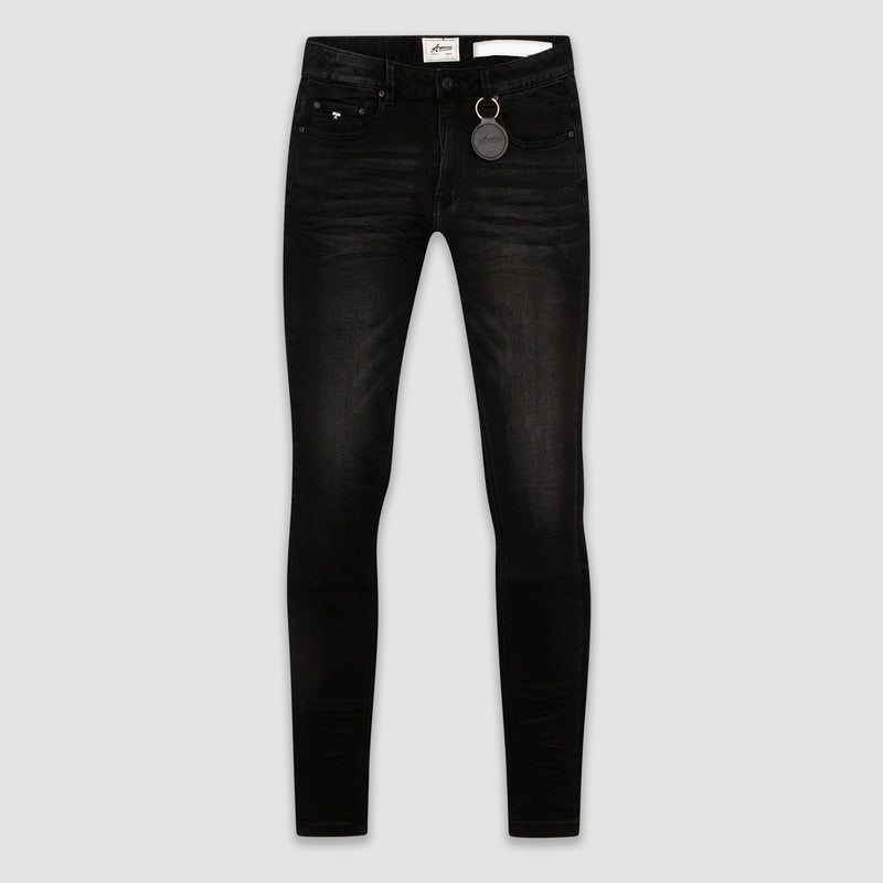 Jean en denim noir uni haut de gamme d'inspiration italienne.