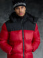 • Colour blocked, black hood and top panel, red coloured sleeves and body
